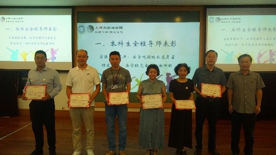 开学典礼之后,学院举行了本科生全程导师表彰。党委书记徐国明老师为六位优秀本科生全程导师颁发证书。