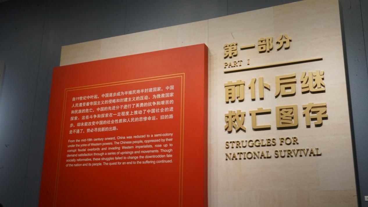 场馆的第一部分展示了清政府与西方列强签订的24个不平等条约的文本,还展出了船、炮、兵器等文物,揭示了鸦片战争时期中华民族的水深火热和深重苦难。为了寻找救国救民道路,无数志士仁人前仆后继、不懈探索,但农民起义、君主立宪、资产阶级共和制等救国方案都相继失败了,但是在希望与挫折相伴中共和国的幻象已初步呈现,为我们党的诞生做了历史铺垫。