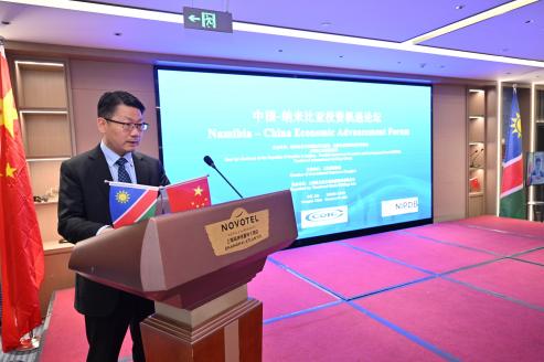 Ms.Tokkie Nchindo代表纳米比亚驻华大使伊莱亚·乔治·凯亚莫致辞,表达了对论坛顺利开幕的祝福。纳米比亚工业化和贸易部副司长Mr.Sakeus Kapenda详细介绍了纳米比亚的投资环境。纳米比亚投资促进及发展委员会首席执行官劳哈·南古拉·旺迪女士分享了以“纳米比亚在可再生能源、绿色氢、稀土矿物、农业和制造业方面的投资机遇介绍”为主题的演讲。