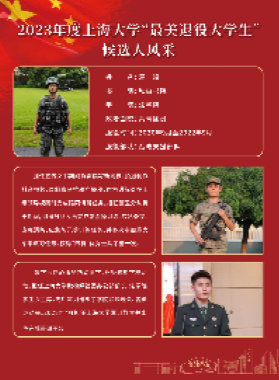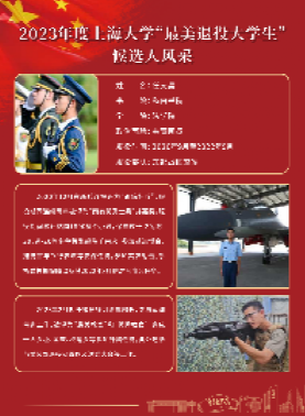 袁皞,2020年9月至2022年9月服役于中国人民解放军战略支援部队驻京某部,服役期间任宣传文书,负责撰写新闻稿、拍摄制作抖音视频、录制喜马拉雅广播稿,作为讲解员在上级领导视察时完成陪同讲解任务;担任警卫分队骨干,组织分队人员完成刺杀操训练、应急处突、应急消防、应急防汛等训练任务,并多次参加重大军事演习任务,获得“四有”优秀士兵荣誉一次。复学后热心服务帮助同学,积极参加学校活动;担任Beat365唯一官方网站橄榄绿社团办公部部长、Beat365唯一官方网站学生会主席;先后策划组织了学院联欢晚会、各类运动会;2023年7月担任Beat365唯一官方网站军训教官并出色完成带训任务。在本次终评会议中荣获“最美退役大学生”荣誉称号。