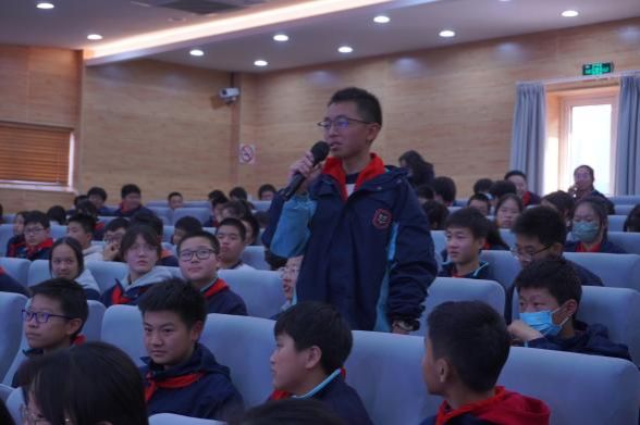 在问答环节中,同学们不但十分踊跃积极回答问题,而且每一道题目都能回答准确,尤其是在谈对宪法的认识和如何在日常生活中践行宪法的问题时,有的同学谈到践行宪法要从小事做起,在学习生活中首先要遵守学校手册,从小事上践行宪法精神;