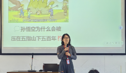 讲座中,郭娜娜老师从“孙悟空为什么会压在五指山下”这一问题出发,将学生们引入对法治的思考。孩子们纷纷畅所欲言,细数孙悟空偷蟠桃、大闹天宫等种种“罪状”。通过对孙悟空行为的分析,引出本次讲座的主题。