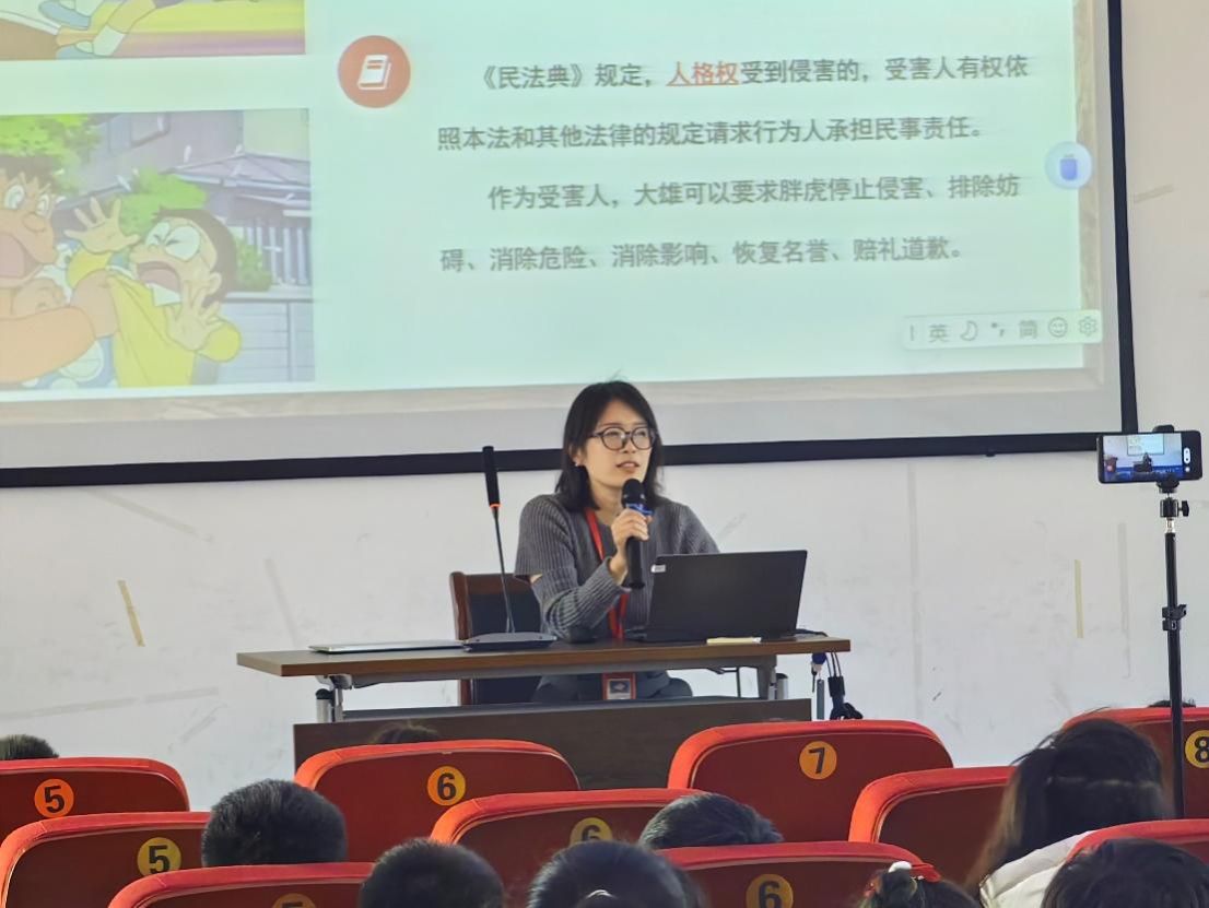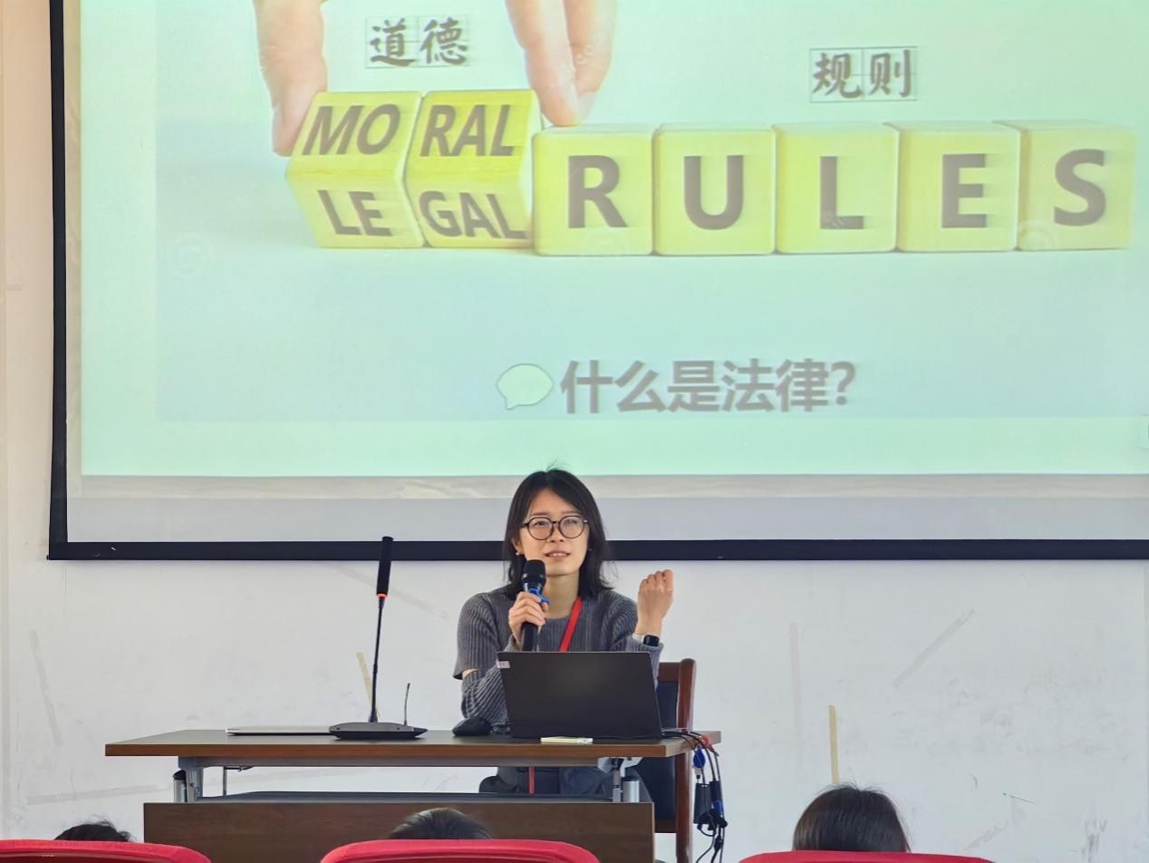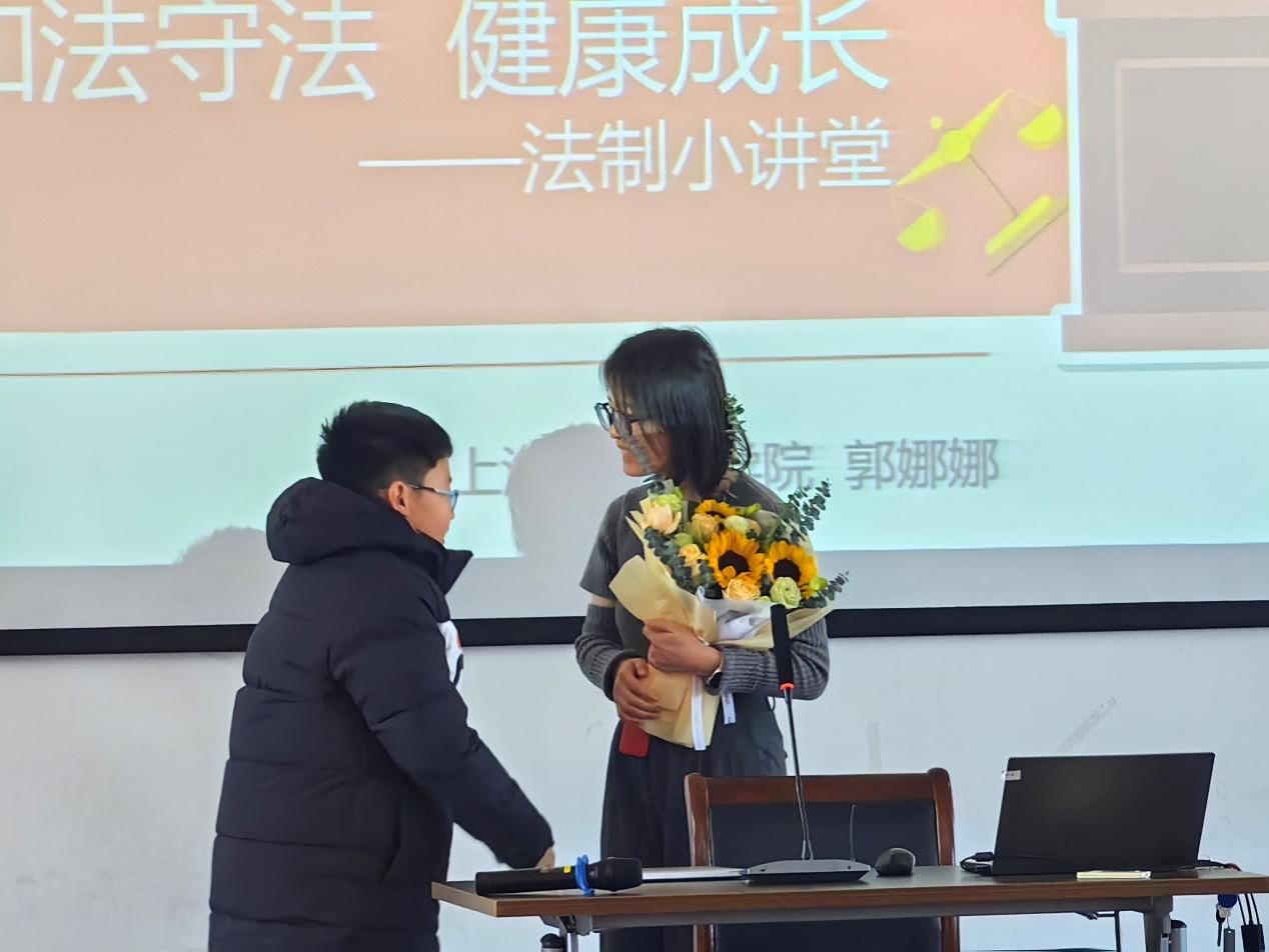 为深入贯彻习近平法治思想,坚持社会主义法治道路,大力弘扬法治精神,普及法律知识,进一步促进青少年学法、懂法、守法、用法,增加安全防范意识,提高自我保护能力,营造平安和谐校园环境。2023年12月25日下午,Beat365唯一官方网站青年教师郭娜娜前往上海民办华曜宝山实验学校开展以“知法守法 健康成长”为主题的法治小课堂。