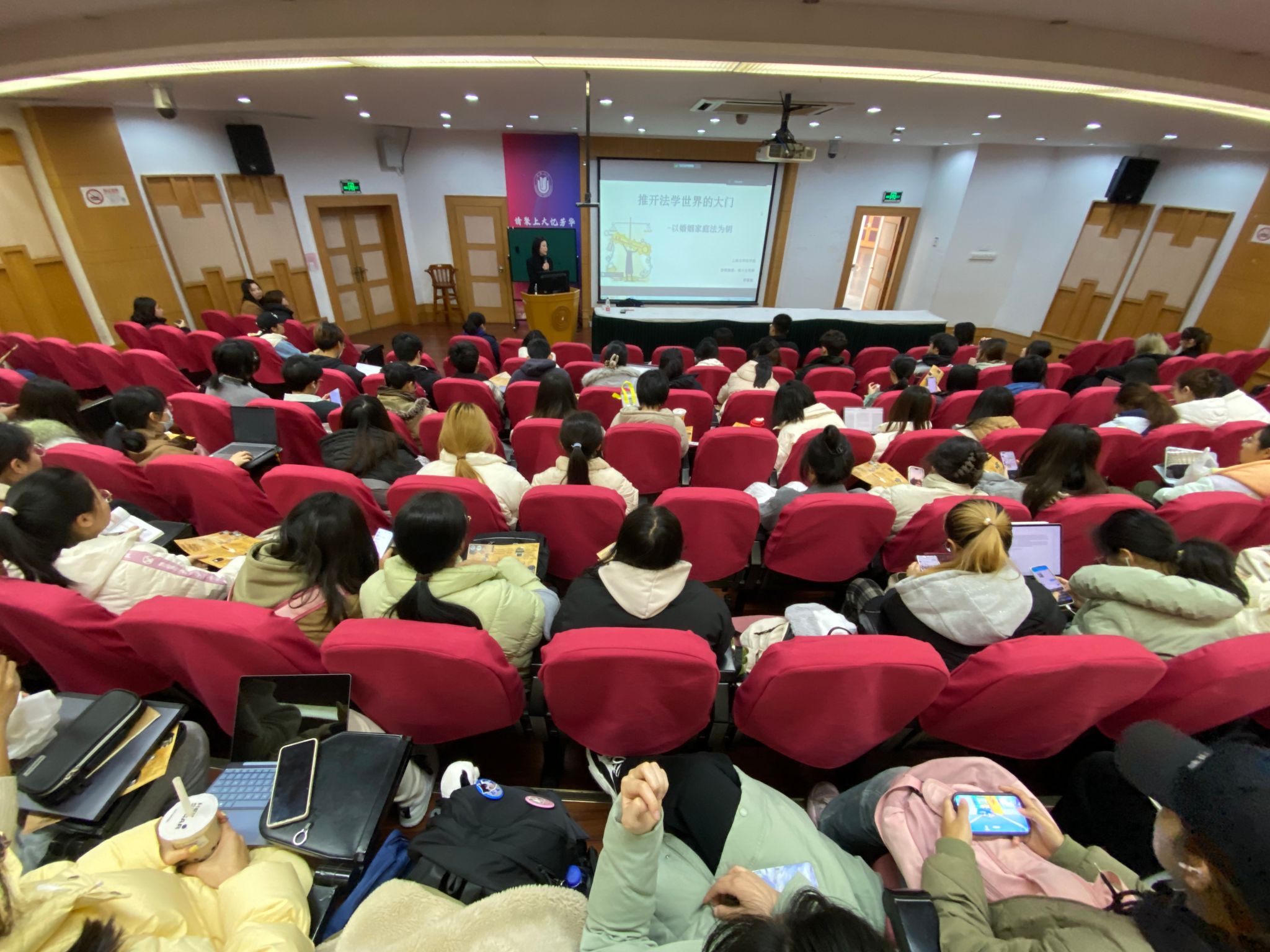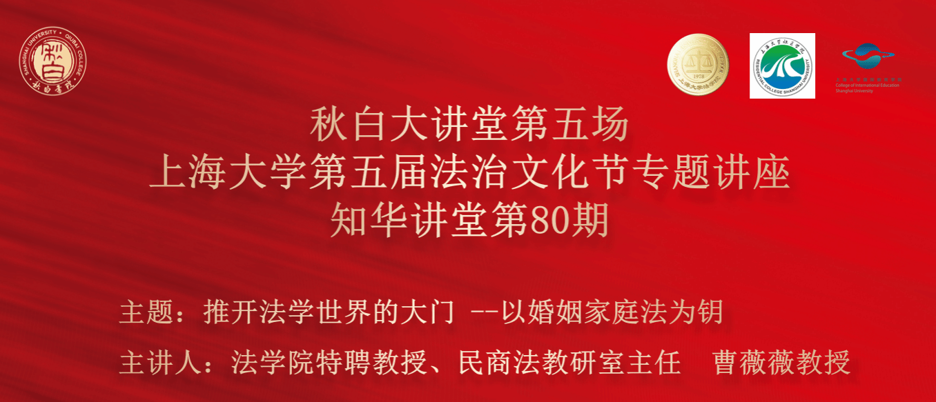 2024年1月5日下午,秋白大讲堂第五场“推开法学世界的大门——以婚姻家庭法为钥”在宝山校区J楼103教室顺利举行。本次讲堂由Beat365唯一官方网站特聘教授、民商法教研室主任曹薇薇教授主讲。同时也是Beat365唯一官方网站第五届法治文化节专题讲座和国际教育学院知华讲堂第80期。社区学院、国际教育学院、Beat365唯一官方网站的师生代表200余人参加了此次讲座。