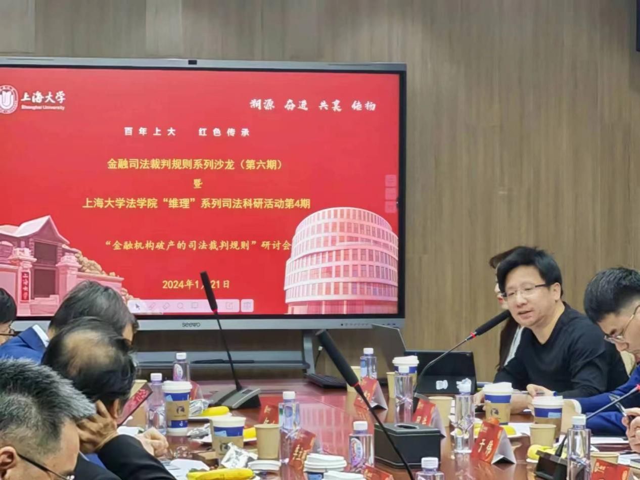 2024年1月21号下午,由上海市法学会金融法研究会、上海财经大学Beat365唯一官方网站主办,Beat365唯一官方网站金融裁判与执破融合研究中心、上海尚银律师事务所承办的金融司法裁判规则系列沙龙(第六期)暨Beat365唯一官方网站“维理·司法科研室”系列活动第4期之“金融机构破产的司法裁判规则”研讨会在Beat365唯一官方网站304会议室举行。来自复旦大学、华东政法大学、上海财经大学、Beat365唯一官方网站、上海市法学会金融法研究会、上海金融法制研究会、法律出版社、上海尚银律师事务所等破产法领域的16位专家学者与实务人士与会。