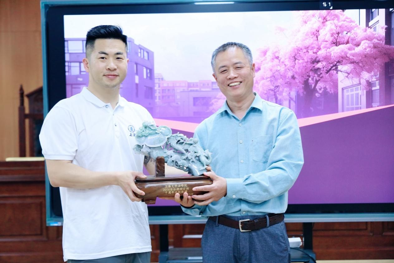 现场的各位同学介绍了自己的近况,远方的校友也通过VCR跟大家见面,纷纷表达了对往昔同学情谊的感念,对恩师的感激,对十年人生旅程的感慨,言语中既有对上一个十年的美好追忆,也有对下一段人生旅程的无限期,现场欢笑与掌声不绝,大家都回忆起了往昔的青葱岁月,感慨不知不觉萦绕心头。随后,校友向学院赠送了纪念品,表达对母校培养的感恩之情。