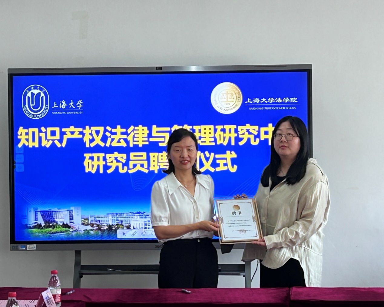 在知识产权法律与管理研究中心研究员聘任仪式上,张玉蓉老师代表知识产权法律与管理研究中心向龚清华、王飞两位实务专家颁发聘书。张玉蓉老师首先对二位的大力支持表示诚挚的感谢,并介绍了知识产权法律与管理研究中心的发展方向,希望双方共促知识共享、努力实现双赢。