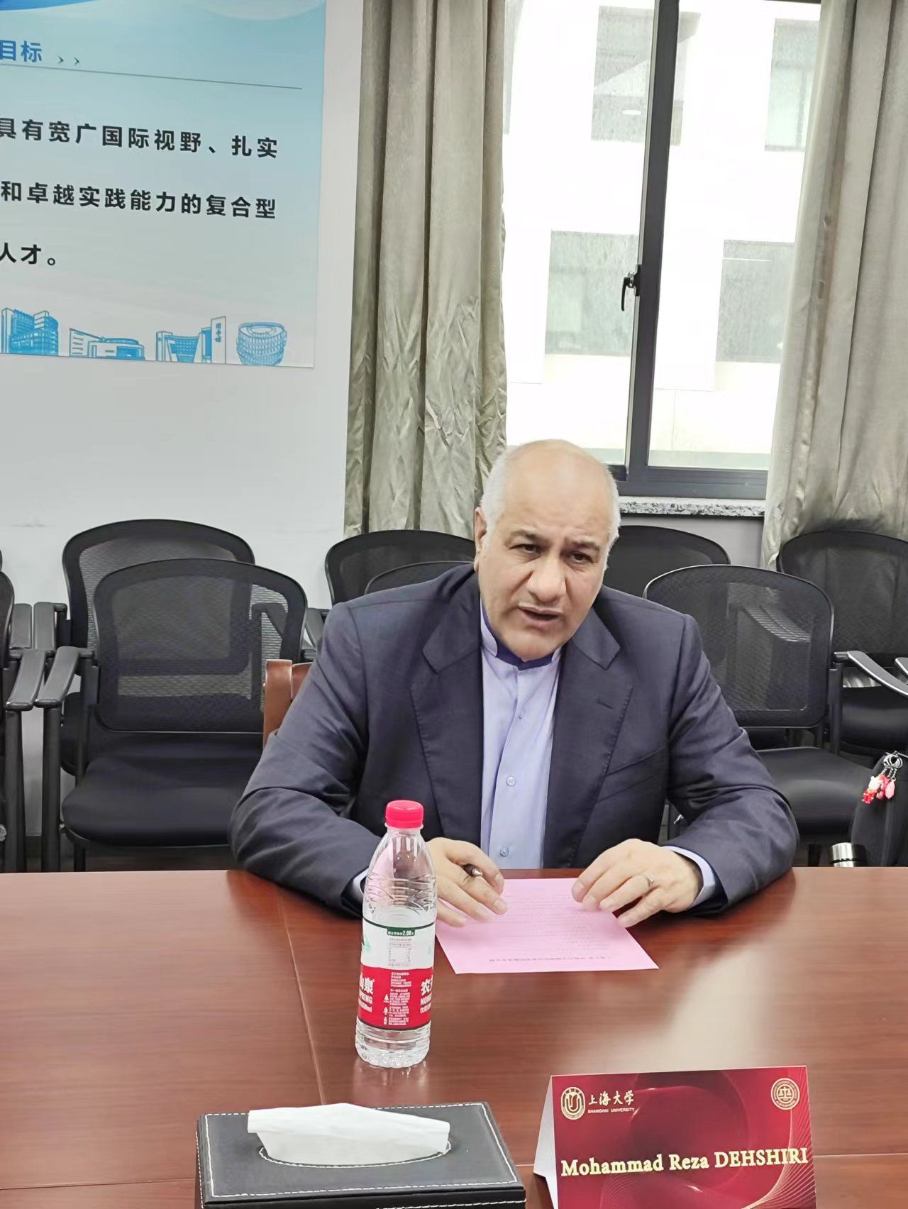 Mohammad Reza DEHSHIRI对Beat365唯一官方网站的热情接待表示感谢,并简要介绍国际关系学院的基本情况,国际关系学院是伊朗外交官的摇篮。他表示Beat365唯一官方网站与国际关系学院合作前景十分广阔,可以在国际组织、国际法、模拟法庭等多方面合作,热忱欢迎Beat365唯一官方网站师生去国际关系学院进行交流学习。