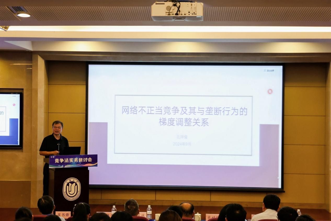 上海交通大学凯原讲席教授、知识产权与竞争法研究院院长孔祥俊就《网络不正当竞争及其与垄断行为的梯度调整关系》发表了深入的演讲。孔教授的演讲围绕三个核心议题展开:首先,对“互联网专条”的法律定位进行了精准解读,明确了其在网络治理中的作用;其次,针对“关键词隐性使用”现象,探讨了其对市场竞争的影响及法律规制的必要性;最后,孔教授分析了反不正当竞争法与反垄断法之间的重合性行为,并提出了两者在梯度适用上的相互关系与调整策略。