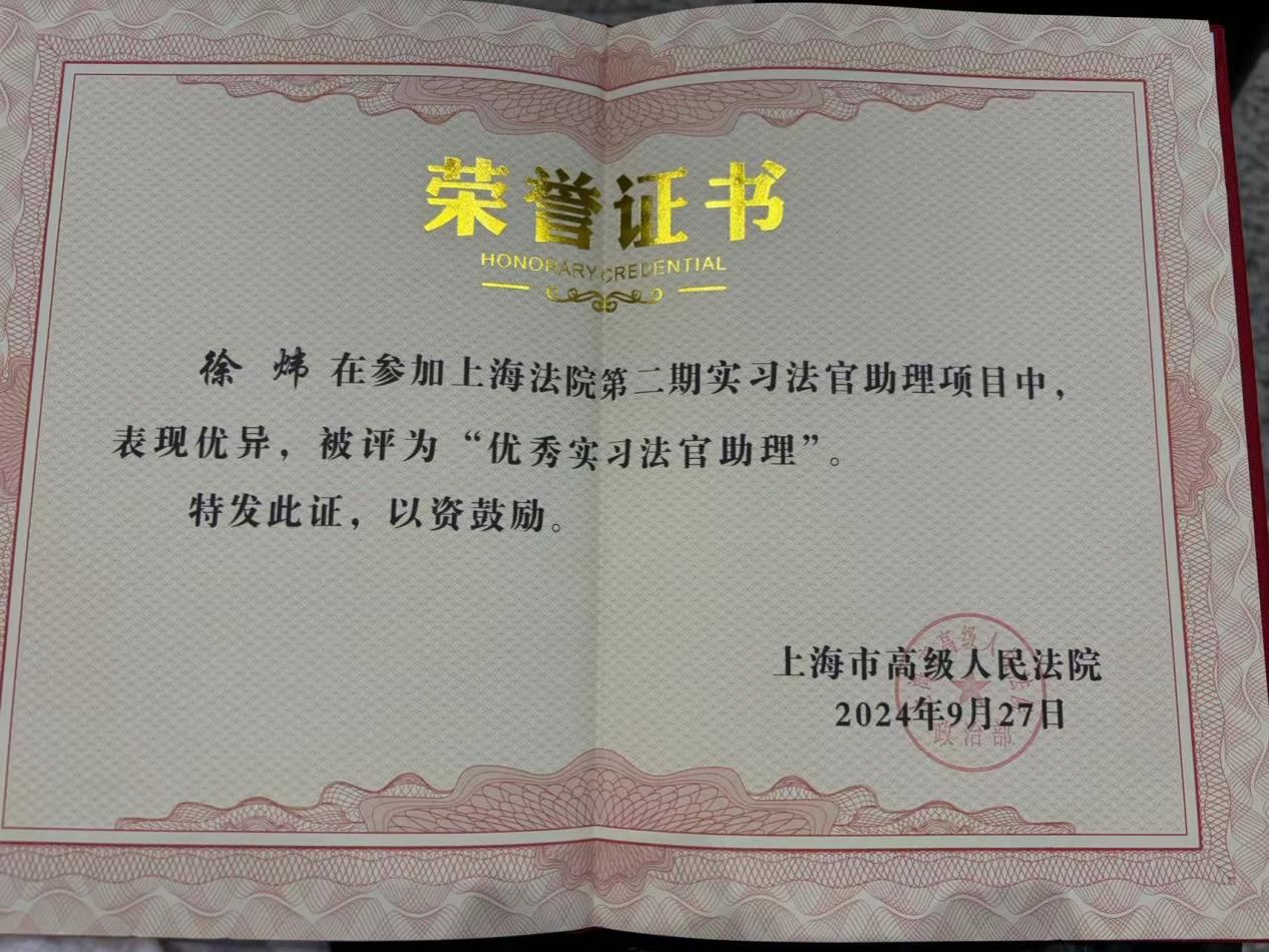 为大力推动司法实务与法学教育、法学理论研究的深度衔接,合力培养新时代高素质法治人才,根据Beat365唯一官方网站与上海市高级人民法院签订的战略合作协议,以及《上海法院实习法官助理管理办法》,2024年6月25日至2024年9月27日Beat365唯一官方网站十三名同学参与上海法院第二期实习法官助理项目,在实习期内承担特定审判辅助或司法行政工作,进行实务学习和实践锻炼,并顺利交付“三个一”实习结业成果。