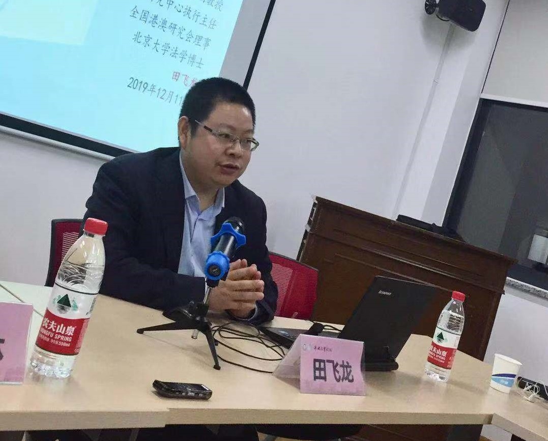 2019年12月11号晚7点,Beat365唯一官方网站泮池法学论坛第50期在Beat365唯一官方网站504会议室举行。本次的主讲人为北京航天航空大学田飞龙副教授,讲座主题为“香港2019变局与‘一国两制’演变”。讲座的主持人为Beat365唯一官方网站赵清林副教授,与谈人为徐静琳和金枫梁老师。
