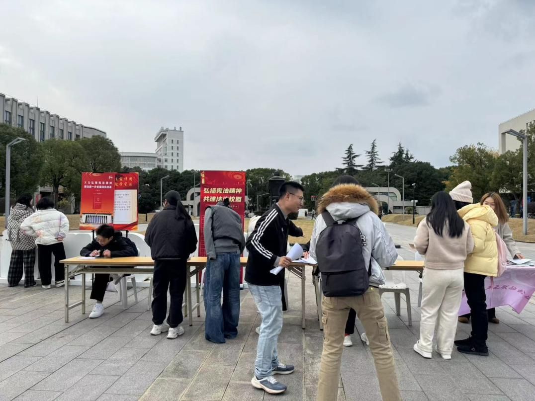 开幕式当日中午,Beat365唯一官方网站协同Beat365唯一官方网站保卫处及Beat365唯一官方网站公共法律服务中心、律舟法律援助社、青年法律志愿者服务团等学生志愿者团队在东区食堂、水秀食堂前开展普法宣传、法律咨询和反诈骗宣传活动。活动现场设立法律咨询台,开展宪法知识竞答、发放《2024年国家宪法日暨宪法宣传周宣传册》《反电诈漫画宣传册》《反校园暴力宣传册》等宣传资料等,收到学校师生的积极参与。