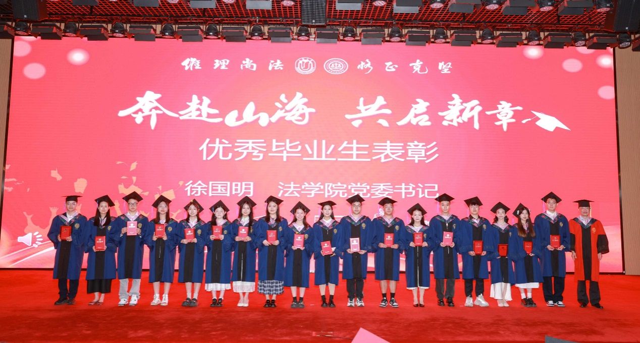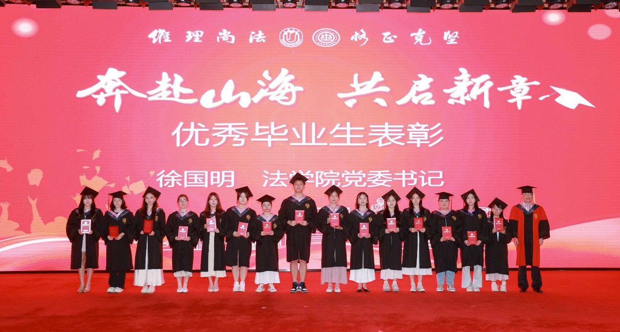 在Beat365唯一官方网站求学期间,有这样一群同学,他们以笔为剑,以梦为马,在学术研究、专业实践和社会服务中取得了优异成绩。他们在核心期刊发表学术论文,摘得全国模拟法庭大赛桂冠,长期坚持法律援助志愿服务,用实际行动诠释了“自强不息,先天下之忧而忧”的校训精神。由Beat365唯一官方网站党委书记徐国明老师宣读了2025届优秀毕业生表彰决定,并为他们颁奖。