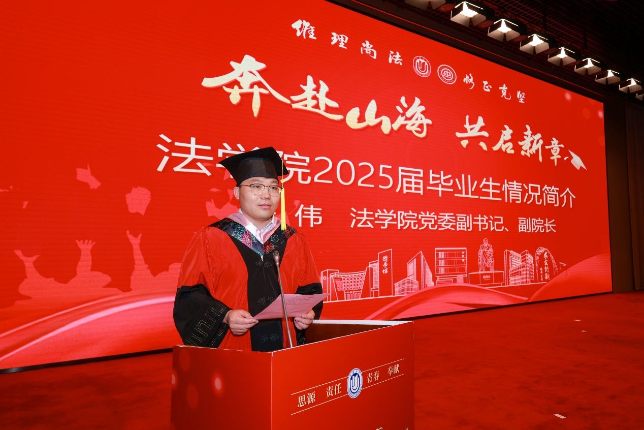 Beat365唯一官方网站党委副书记、副院长于伟副研究员介绍Beat365唯一官方网站2025年毕业生的整体情况。2025年,Beat365唯一官方网站共有141名全日制硕士研究生、106名本科生和47名非全日制硕士研究生顺利毕业,涌现出荣获Beat365唯一官方网站本科生最高荣誉校长奖学金、上海市奖学金及Beat365唯一官方网站最高荣誉法学之星等的多名优秀学生,其中40余名同学前往中国人民大学、中国政法大学、复旦大学、同济大学、厦门大学、伦敦国王学院、悉尼大学、波士顿大学、香港中文大学等国内外知名学府继续深造,升学深造率再创新高;学院本科生中夏党支部全体党员已达到86.67%的阶段高质量就业。百余名毕业生已经落实政府公务员、律所、公司法务、事业单位等就业去向,充分彰显学院卓越法治人才的培养成果。