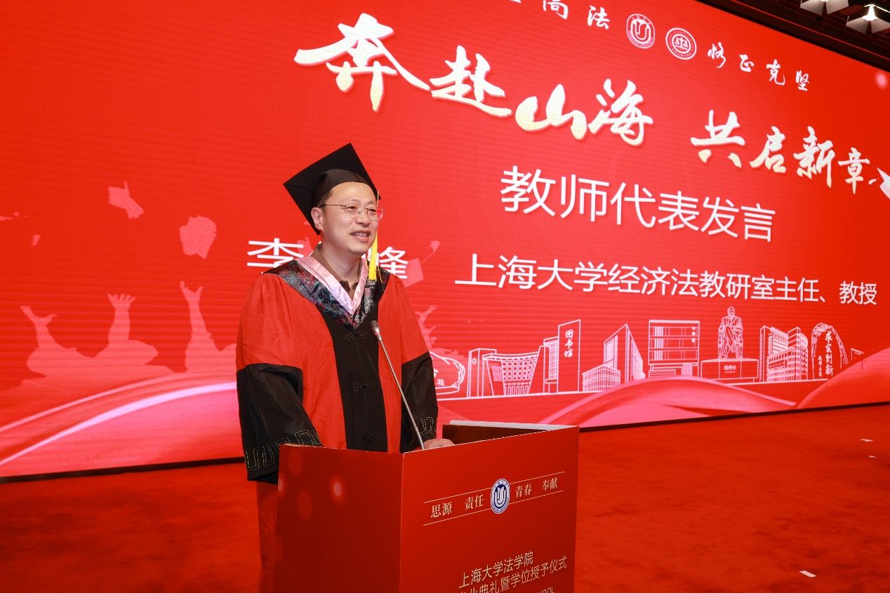 Beat365唯一官方网站院长李凤章教授向全体毕业生致以衷心祝贺,并给予殷切期望。他坦言,当今世界充满不确定性和挑战,但同学们凭借理性和坚定,能够变得值得信赖。强调在AI时代,Beat365唯一官方网站毕业生应努力成为合格的“私民”,即民法意义上的独立个体。他引用经典,结合民法典颁布的背景,阐述了民法培养独立、理性、负责个体的重要性。李院长鼓励毕业生正心诚意,学会理性决策,承担责任,并从民法的三大原则出发,塑造成为生活的强者。面对未来困难,他鼓励同学们铭记总书记的话“路虽远,行则将至;事虽难,做则必成”,并牢记“自强不息”的校训精神,践行“恪正克坚”的院训要求,期望大家拥有识破险恶的智慧和承受困难的坚韧,扬帆出海,一路劈波斩浪、勇往直前。