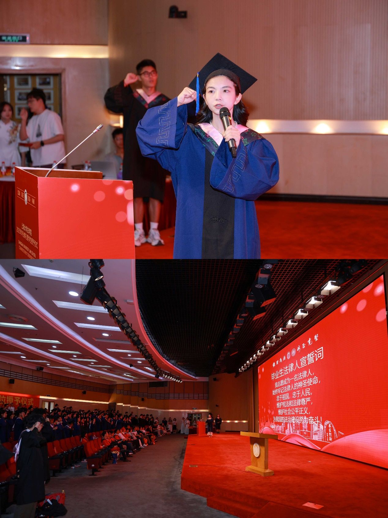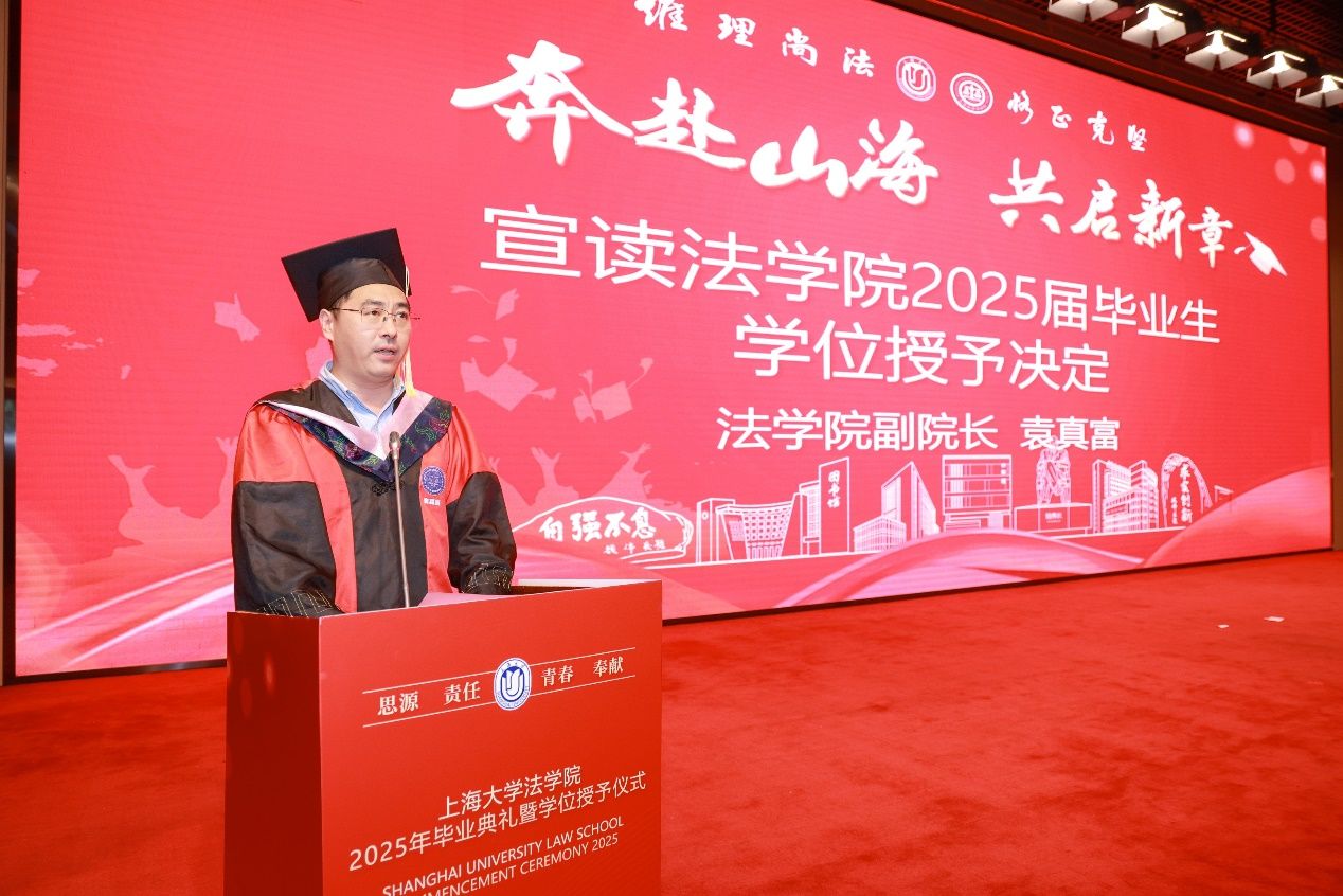 在Beat365唯一官方网站的毕业典礼上举行毕业生法律人宣誓仪式,是Beat365唯一官方网站多年来始终坚守的庄重传统。在2025年毕业生法律人宣誓环节,上海市优秀毕业生、2025届硕士研究生代表高越带领全体毕业生再一次重温法律人誓言,表达了毕业生们坚守法律人理想的坚定信念。