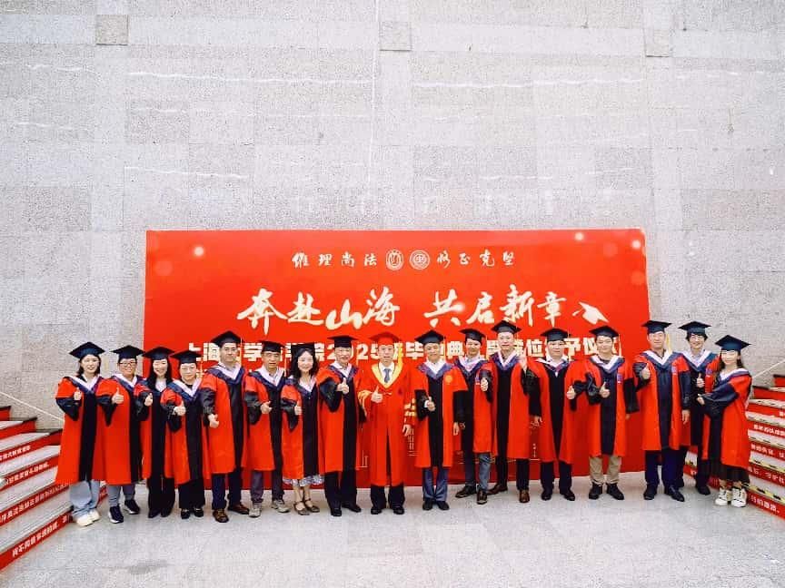场中洪凌啸博士、2025届硕士研究生谭江合作贡献一场意犹未尽的歌曲串烧,以及2024届校友、上海申新律师事务所周国奇的脱口秀,为典礼的进行增添一份欢乐的气息,调动了现场参与人员的热情气氛。