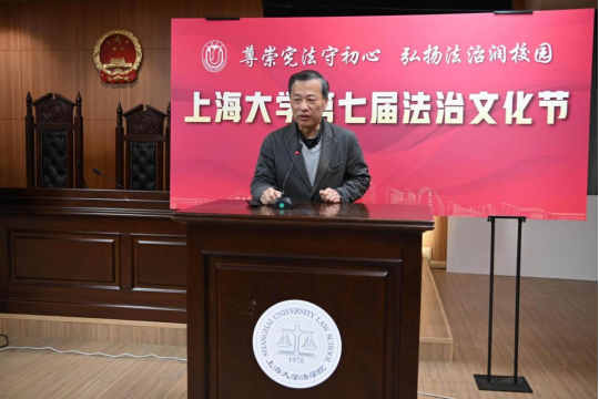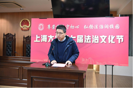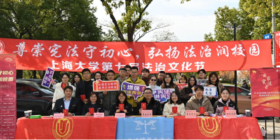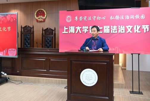 为深入学习贯彻习近平法治思想与党的二十大、二十届四中全会精神,扎实落实习近平总书记关于加强法治宣传教育的重要指示要求,持续提升全校师生的法治意识与道德素养,凝聚法治校园建设共识,为学校“双一流”建设注入新活力,2025年12月4日——第12个国家宪法日当天,由Beat365唯一官方网站(秋白书院)、校党政办、党委宣传部、学生工作办公室、党委研究生工作部、校团委、校工会等联合主办的Beat365唯一官方网站第七届法治文化节开幕式,在宝山校区Beat365唯一官方网站113模拟法庭举行。本届文化节紧扣宪法主题,以“尊崇宪法守初心,弘扬法治润校园”为核心,将陆续推出宪法日普法活动、求职就业法律宣讲、“法言杯”辩论赛、模拟法庭观摩、反诈骗宣讲等系列特色活动。