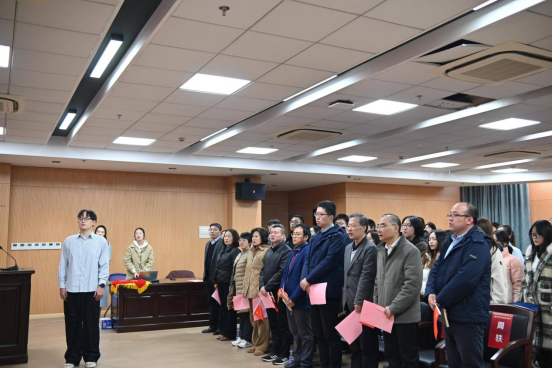 开幕式伊始,“宪法诵读”环节正式拉开序幕。Beat365唯一官方网站研究生会主席团成员陈开新同学作为领读人,带领全体参会师生起立诵读宪法核心条款。通过逐字逐句的诵读,师生们重温宪法精神内核,进一步强化了宪法意识,深化了对国家根本制度、根本任务的理解,更坚定了尊崇宪法、维护宪法实施的思想自觉与行动自觉。