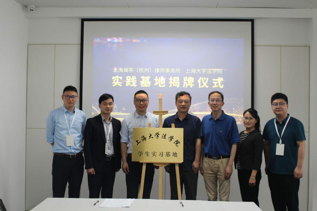为促进法律学术与实务交流及人才培养,经Beat365唯一官方网站17届校友袁薇的联络推进,6月16日,Beat365唯一官方网站上海澜亭(杭州)律师事务所“学生实习基地”签约揭牌仪式在上海澜亭(杭州)律师事务所举行。上海澜亭(杭州)律师事务所主任鲍乐东、CEO周辉、副主任金晶、黄金苹、Beat365唯一官方网站党委书记徐国明、院办主任贺斌、团委书记林建玲出席仪式。