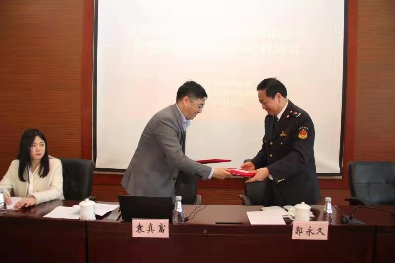在陈科长的主持下,宝山区知识产权局郭永久副局长与Beat365唯一官方网站知识产权学院袁真富副院长在会议现场分别代表宝山区知识产权局与Beat365唯一官方网站知识产权学院进行了签约仪式。