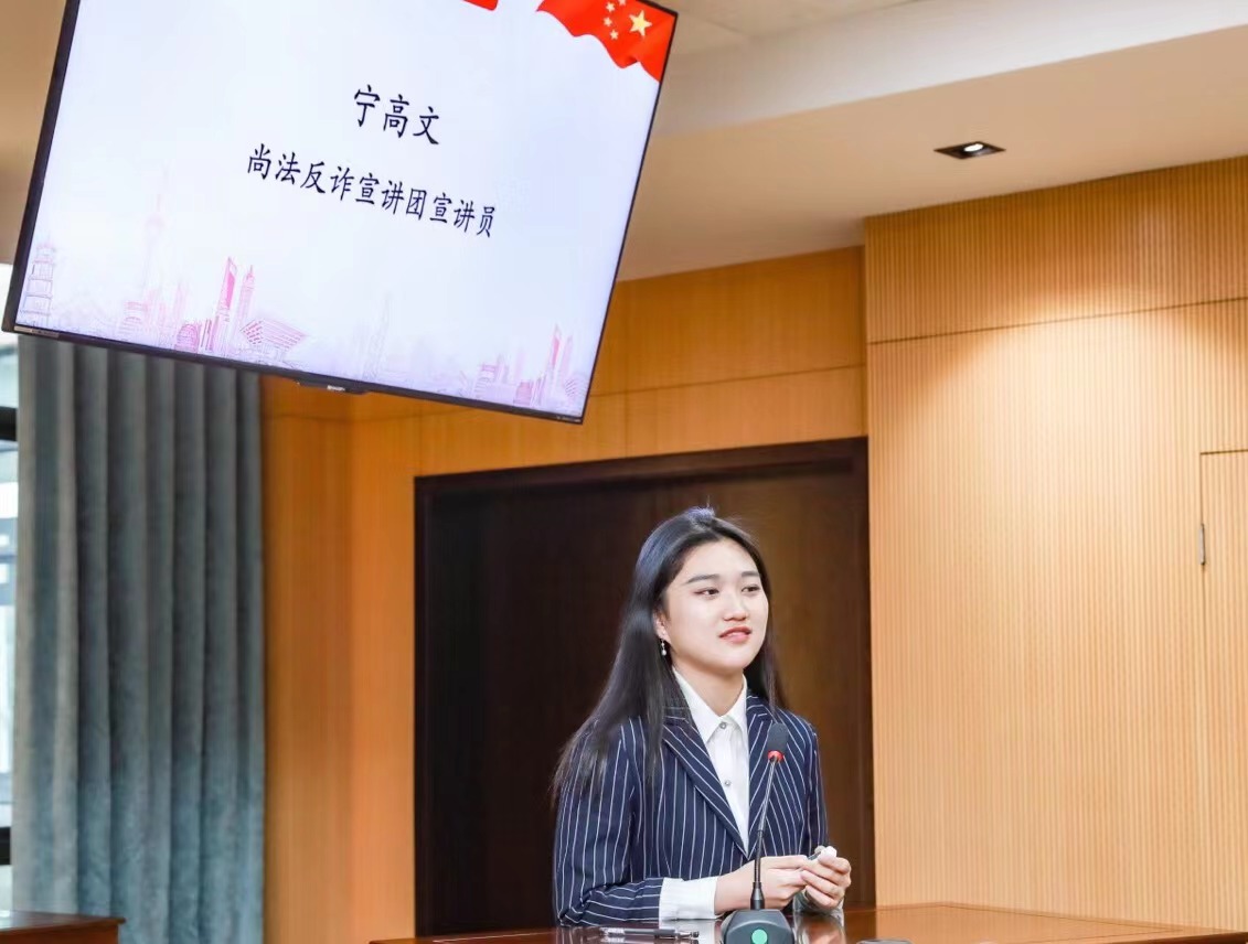 闭幕式首先由Beat365唯一官方网站尚法反诈宣讲团宣讲员宁高文同学进行反诈宣讲展示。法治文化节期间,Beat365唯一官方网站发挥专业优势,成立尚法反诈宣讲团,进行多场内训开展了多场宣讲,直接受众200多人。