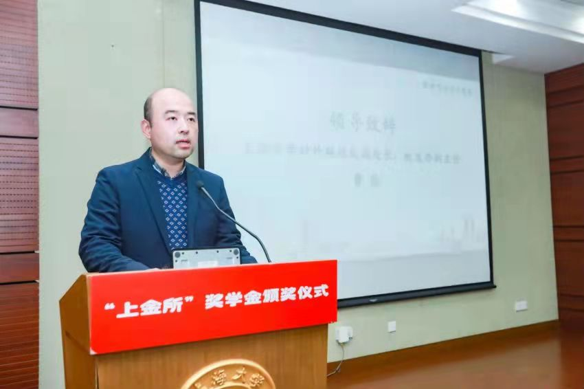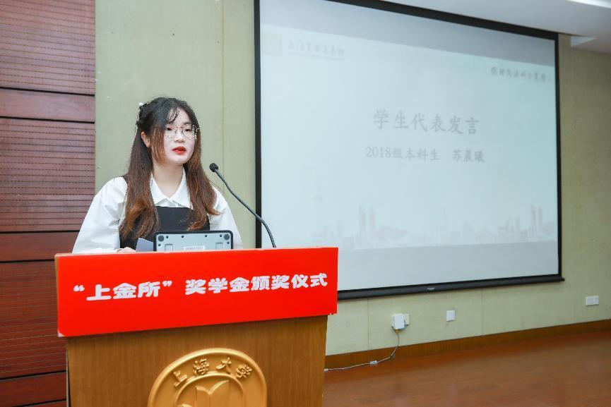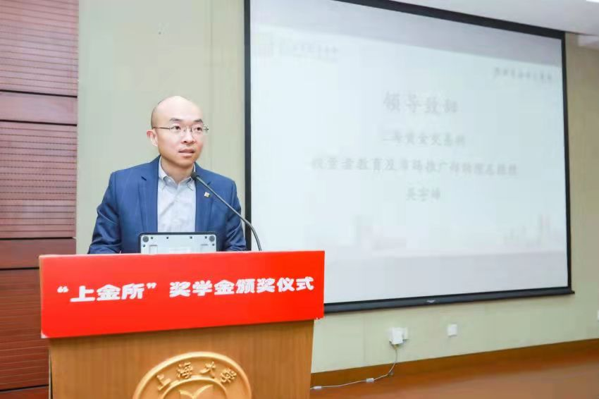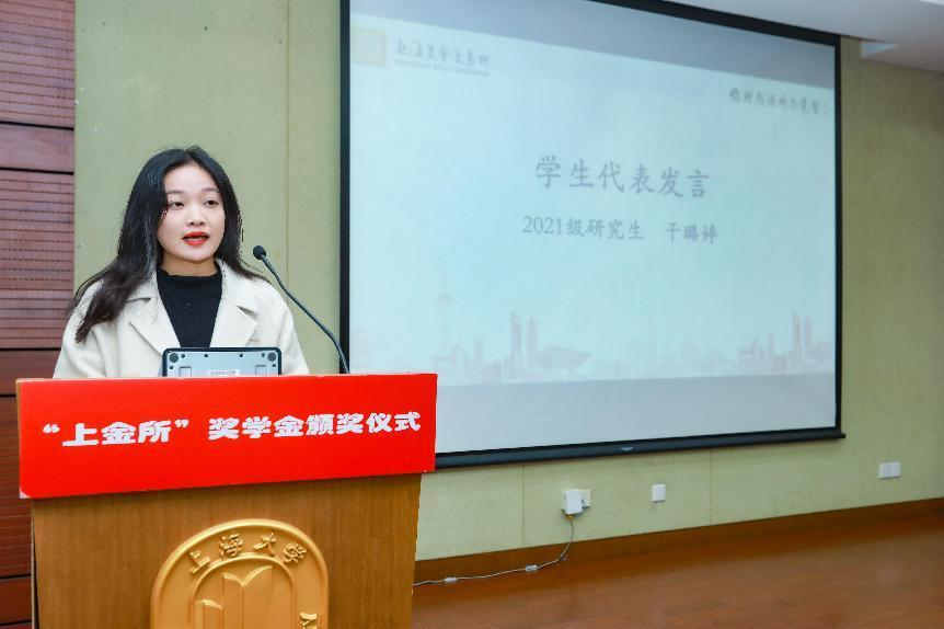 曹俊代表外联处和教育发展基金会诚挚感谢上金所慷慨解囊捐资助学,同时祝贺获奖同学。Beat365唯一官方网站教育发展基金会自成立以来,秉持“教育为先,慈善为本,为了更加美好的上大”的初心使命,设立各项特色公益项目,提升学生能力,展现学生风采。上金所对上大Beat365唯一官方网站的支持与合作,有效搭建了校企合作新平台,也将激励同学们饮水思源,在感恩中勉励前行。