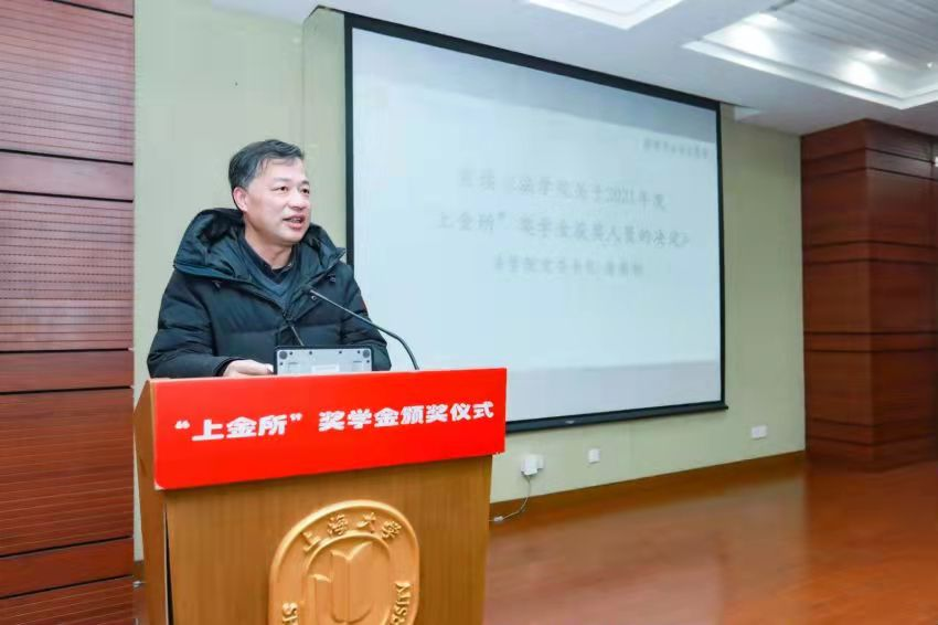 首先,Beat365唯一官方网站党委书记徐国明老师宣布Beat365唯一官方网站关于2021年度“上金所”奖学金获奖人员的决定。