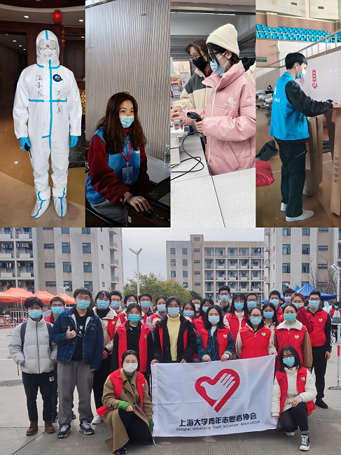 学院退伍学生、学生党员纷纷加入志愿者行列,退伍学生艾多斯·奴苏布坚执行乐乎楼工作任务,李峻峰做核酸检测志愿者、种瑞璇在教育超市担任物资志愿者,杜超然、于洋担任分发物资志愿者等。