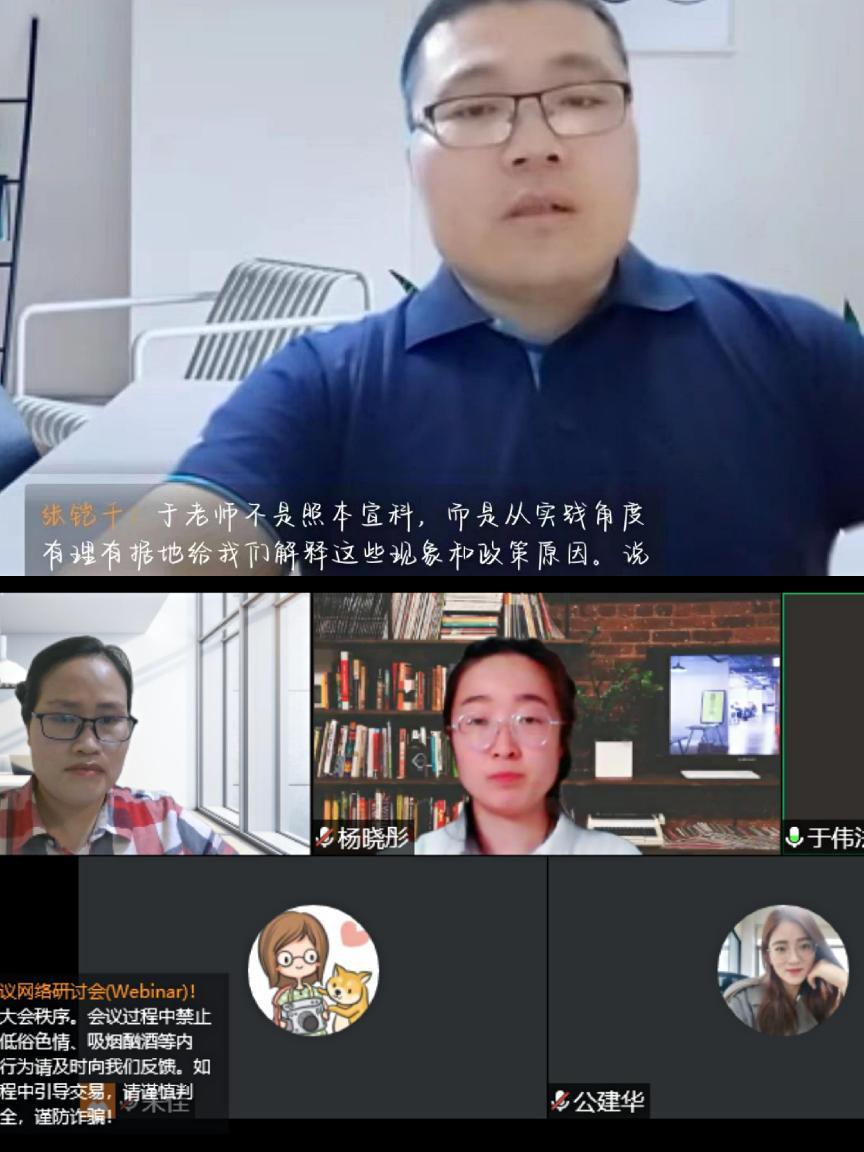 辅导员杨晓彤老师传达了中央政治局常委会会议指示精神、市委常委会扩大会议精神和学校党委的部署要求。随后,于伟老师对同学们近期比较关注的问题进行了解释和说明,并与同学们分享了三点意见建议。一是希望同学们坚定战疫必胜的信心。于伟指出,Beat365唯一官方网站是沪上最早进行封控管理的高校,目前已经取得了疫情防控的阶段性胜利,有上级和社会各方的大力支持,有全校师生的必胜信心以及在此基础上的行动自觉,学校一定能够取得疫情防控的最终胜利。二是希望同学们继续严格遵守学校的相关规定。希望全体同学要继续规范做好防护,尤其注重手部清洁,保持安全距离,坚持做好每天的抗原检测和上传,每位同学都成为合格的自我健康管理者。三是希望同学们要秉持科学理性的态度,为学院学校提出的意见建议,要体现作为法科学子的专业优势,要建立在掌握全面客观情况的前提下善于提出恰当可行的建设性意见和建议。