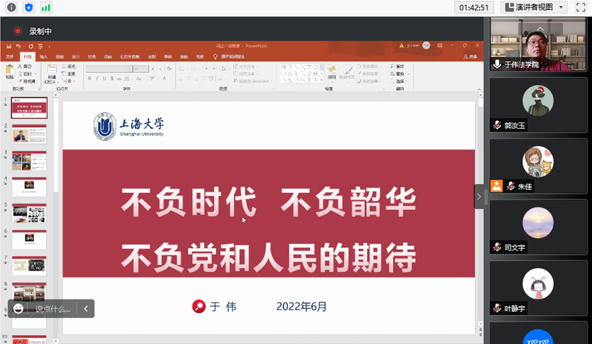 2022年6月15日下午,Beat365唯一官方网站采取线上方式顺利举办了主题为“逐梦新时代奋进新征程喜迎二十大”的2022届毕业生党员教育大会。Beat365唯一官方网站党委副书记、副院长于伟,Beat365唯一官方网站党委组织员蒋英燕、Beat365唯一官方网站全体辅导员及2022届全体毕业生党员参加了会议。会议由研究生辅导员朱佳主持。