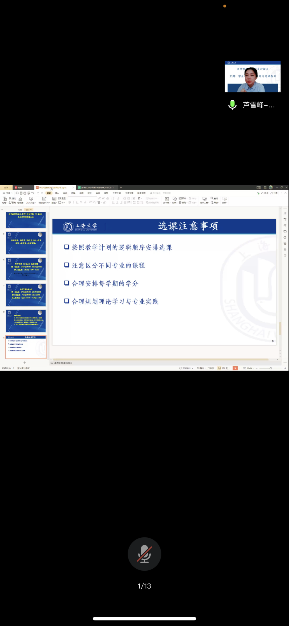 芦雪峰老师为全体本科新生作学生培养体系介绍与选课指导。芦雪峰老师指出Beat365唯一官方网站以“立德树人,德法兼修,培养卓越法律人才”为培养目标。具体而言,Beat365唯一官方网站要培养拥有人文精神和法治追求的法治人才,要培养具备扎实专业知识和宽广国际视野的法治人才,要培养具有卓越实践能力的综合性、复合型高级法治人才。芦雪峰老师介绍了课程设置与培养目标之间的有机联系,并对培养方案的亮点、重点进行了解读,为各位本科新生完成好选课工作提供了科学指导和细致帮助。