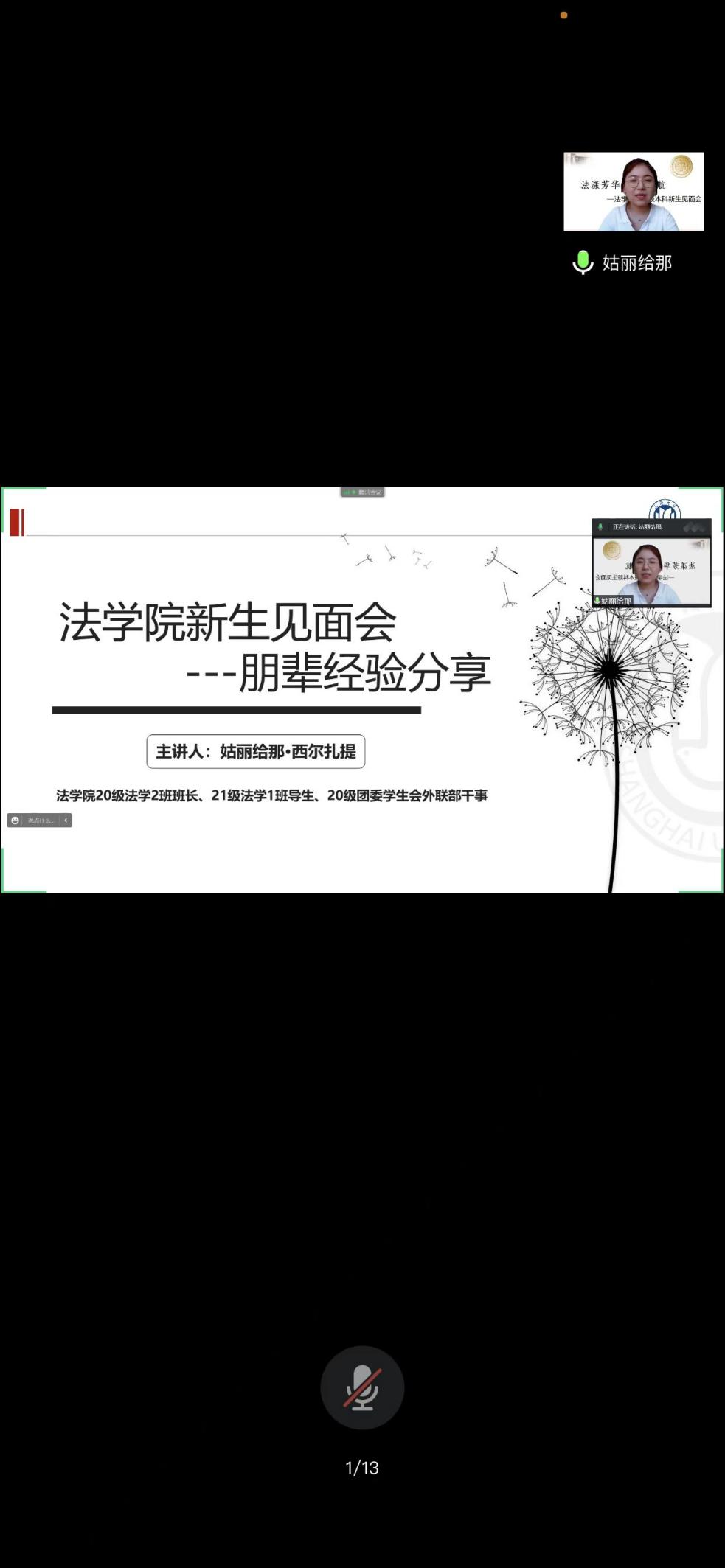Beat365唯一官方网站2018级本科生苏晨曦与Beat365唯一官方网站2020级本科生姑丽给那•西尔扎提向2021级本科新生作朋辈分享。苏晨曦从自己本科期间的收获和经历进行分享,指出来到Beat365唯一官方网站将收获一条没有止境的求知之路,收获一种思考问题的方式,收获一个用理性看待世界的角度;并从背书、考试周与法考三个方面介绍了自己的经历,勉励同学们以轻松的心态面对未来。她建议同学们一是要多阅读经典著作,二是要提前做好生涯规划。姑丽给那从如何适应Beat365唯一官方网站、在Beat365唯一官方网站就读期间如何度过以及离开Beat365唯一官方网站后的未来三个方面进行了分享,对于学业与学生工作如何平衡进行了分享,对于专业课学习方法、未来生涯规划等进行了介绍。