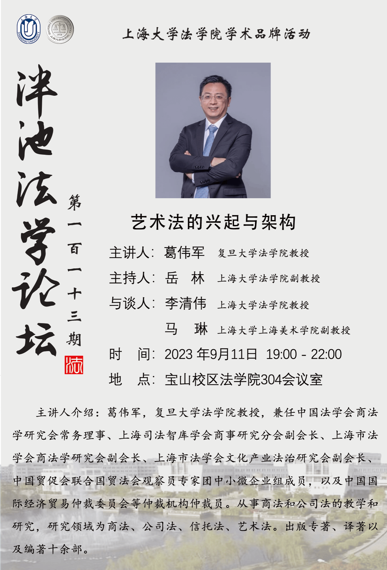 泮池法学论坛第113期 :艺术法的兴起与架构