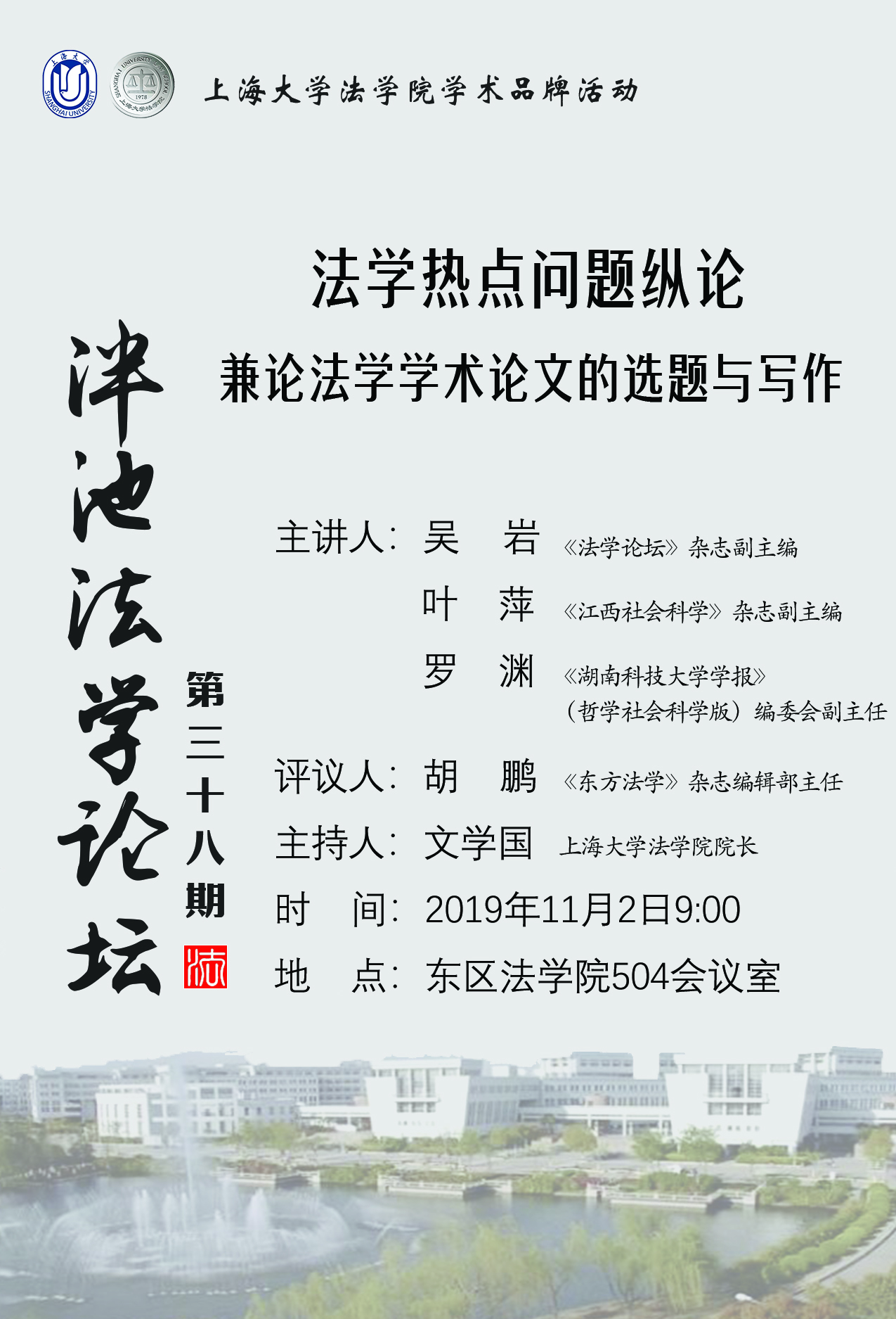 泮池法学论坛第38期预告:法学热点问题纵论——兼论法学学术论文的选题与写作