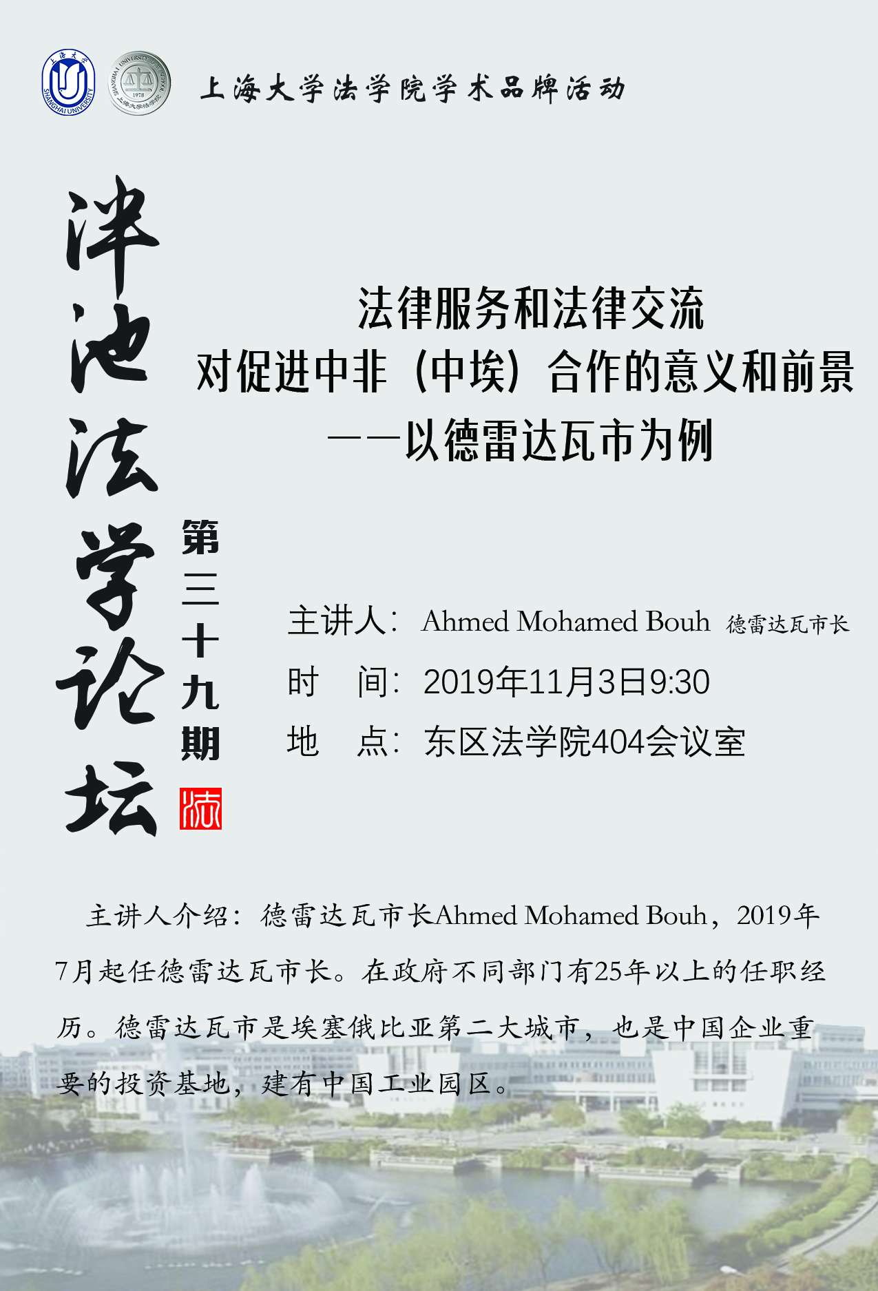 泮池法学论坛第39期预告:法律服务和法律交流对促进中非(中埃)合作的意义和前景——以德雷达瓦市为例