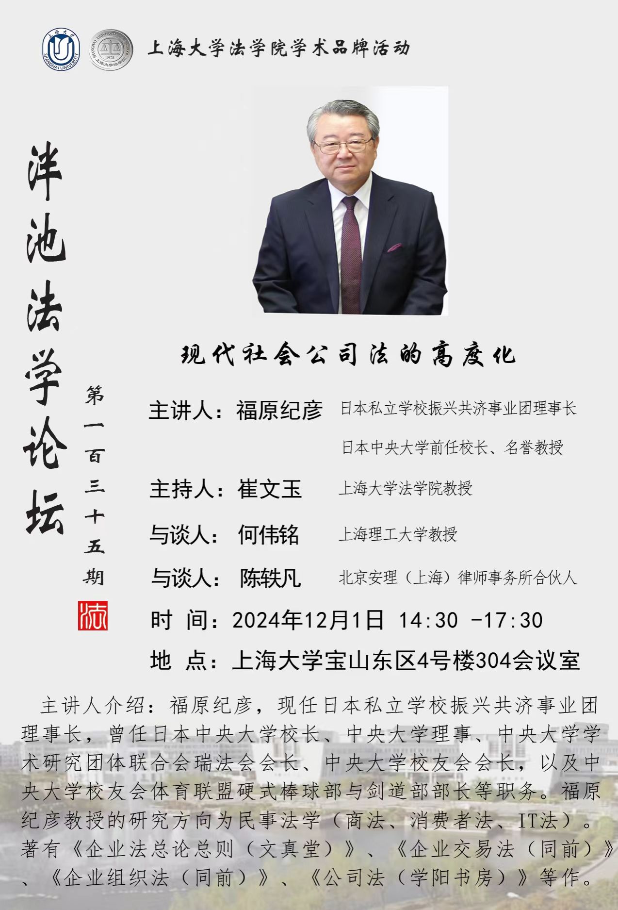 泮池法学论坛第135期:现代社会公司法的高度化