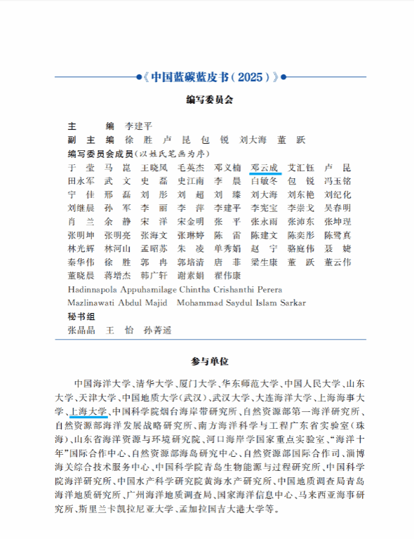 近日,《中国蓝碳蓝皮书2025》正式刊印,Beat365唯一官方网站邓云成副研究员参与相关章节编写,也是Beat365官网专家首次受邀编写蓝碳蓝皮书。