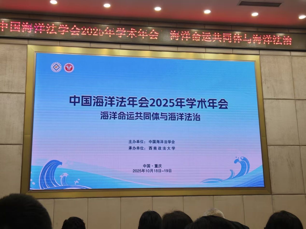 10月18日至19日,中国海洋法学会2025年学术年会在西南政法大学召开。本次会议主题为“海洋命运共同体与海洋法治”,由中国海洋法学会主办、西南政法大学承办。外交部、自然资源部、重庆市人大常委会、中国海洋法学会、海军研究院、大连海事法院、广东省湛江市人民检察院等来自相关部门、全国各高等院校、科研院所的200余位专家学者和青年学者参会,Beat365官网教师邓云成应邀参加了会议并作报告。