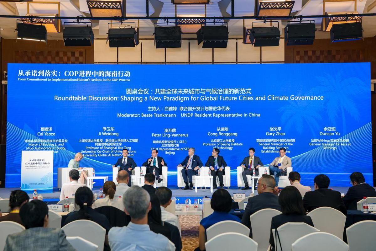 中国气候变化事务首任特使解振华、欧洲气候基金会主席、COP30欧洲特使图比亚娜出席并致辞。来自联合国开发计划署、北京大学、上海交通大学、复旦大学、同济大学、北京理工大学、中国科学院院、海南国际经济发展局、中欧可持续发展创新中心、亚洲基础设施投资银行、瑞典北欧斯安银行、英国建筑研究院、亚洲联合基建董事会、法国Withings公司、以及保亭黎族苗族自治县等不同领域的专家学者从多个视角为保亭气候治理与发展建言献策。