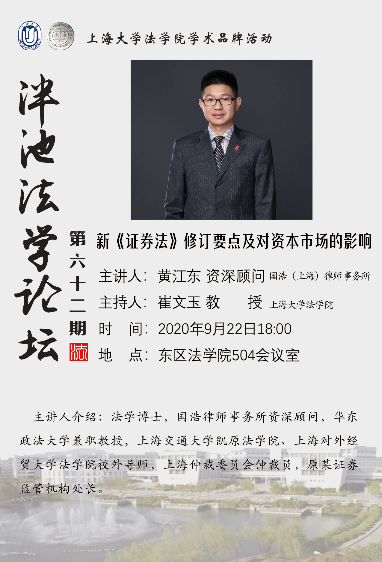 泮池法学论坛第62期预告:新《证券法》修订要点及对资本市场的影响