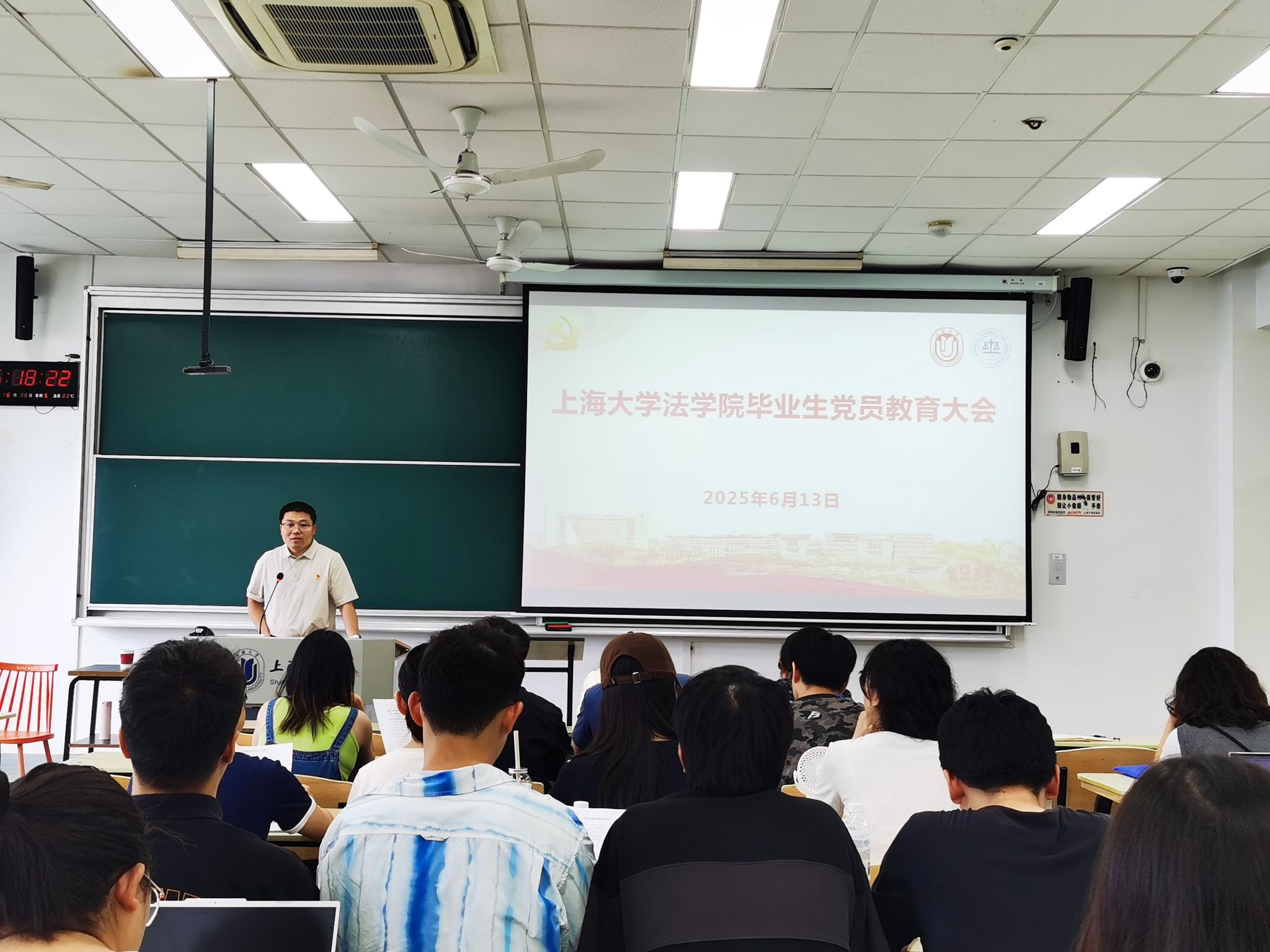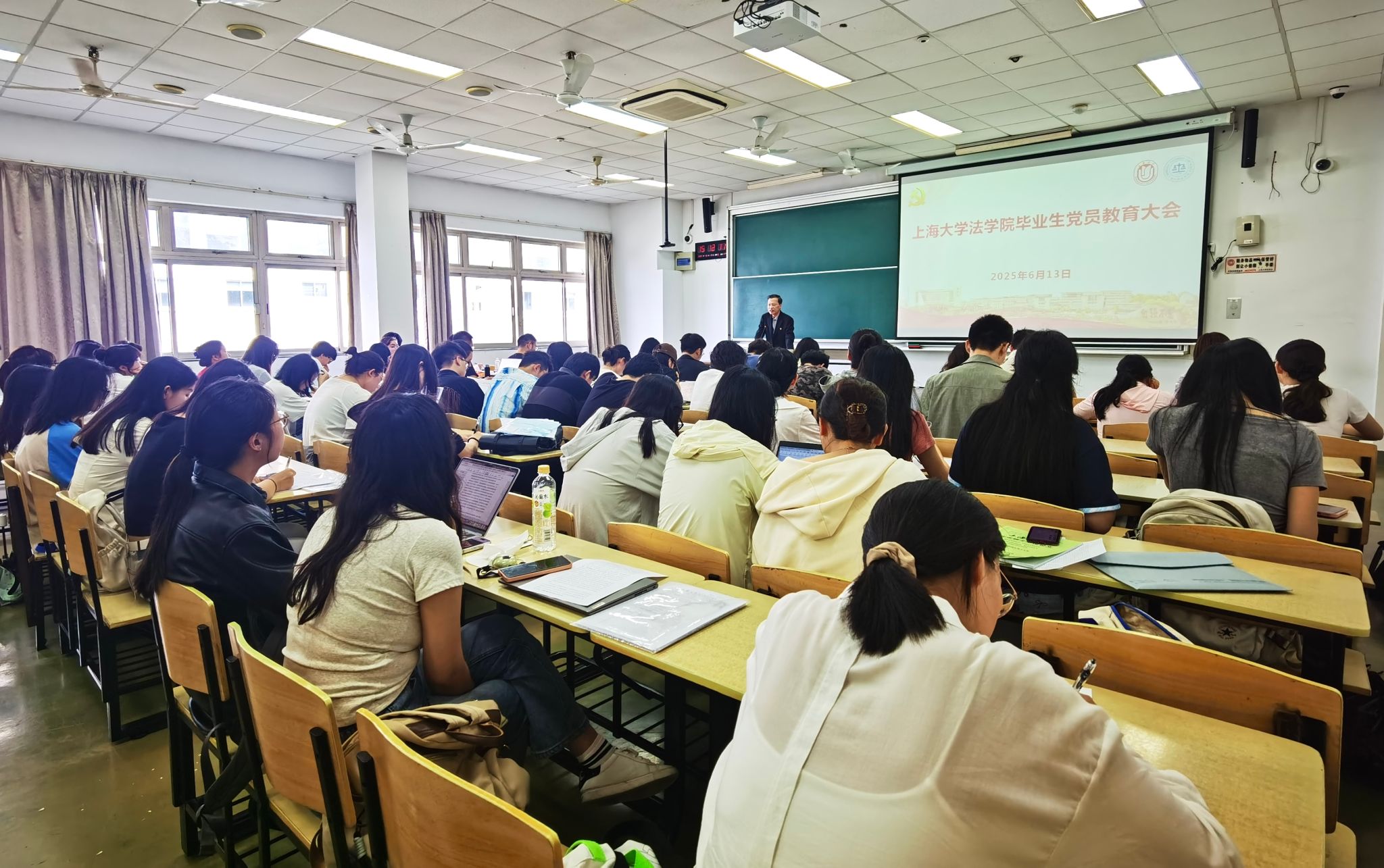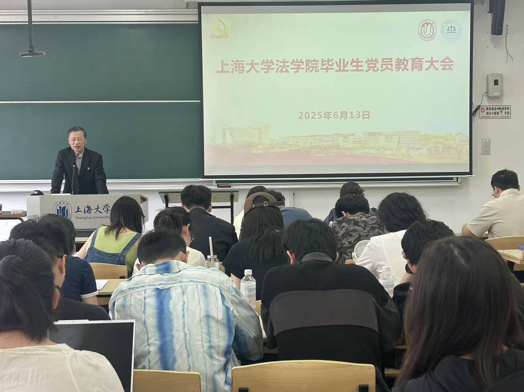 随后,党委副书记书、副院长于伟老师向全体毕业生党员提出殷切期望。他嘱托毕业生党员要勇担时代使命,始终践行党的宗旨,将个人奋斗融入国家发展,在服务人民中实现人生价值,为民族复兴贡献力量。同时,于伟老师希望各位毕业生党员能传承上大精神、彰显责任担当,他勉励大家以校训为指引,发扬母校优良传统,在各行各业展现上大人的风采,为社会进步贡献智慧与力量。此外,于伟老师特别指出,毕业生党员进入社会以后更要时刻以党员标准严格要求自己,强化法纪意识,在未来的工作和生活中以身作则,发挥先锋模范作用。