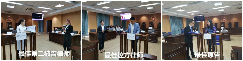 凭借三寸不烂之舌、优雅的仪态和认真的态度,袁思源同学被评为最佳原告律师,朱坤勇同学、廖冰清同学则被评为最佳第一被告律师及最佳第二被告律师。