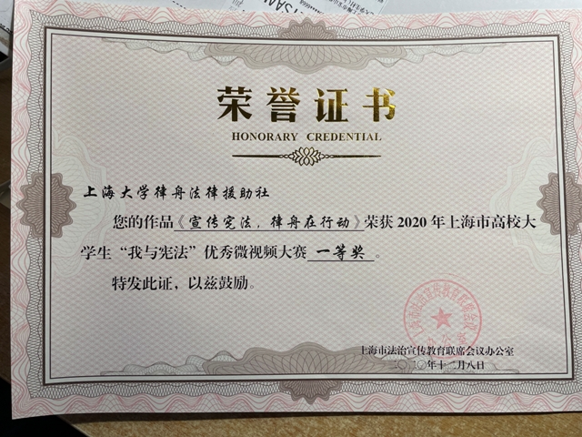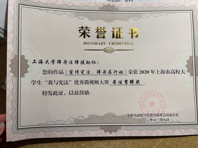 Beat365官网学生喜获上海市高校大学生“我与宪法”优秀微视频大赛一等奖和最佳剪辑奖