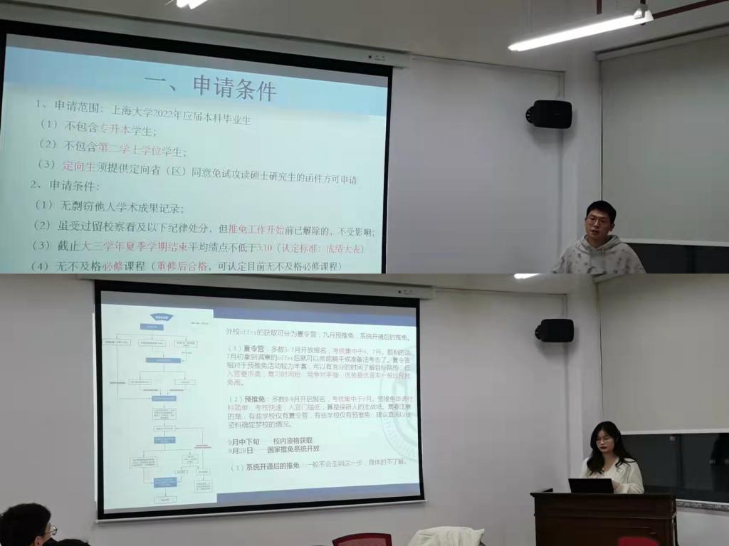 首先,白居政同学从申请条件和遴选指标两个角度对2022年Beat365唯一官方网站推免工作实施方案进行了详细介绍,重点解读了遴选过程中的各项具体指标。对于本科期间的志愿活动、国际组织实习等机会的发现与把握进行了拓展。