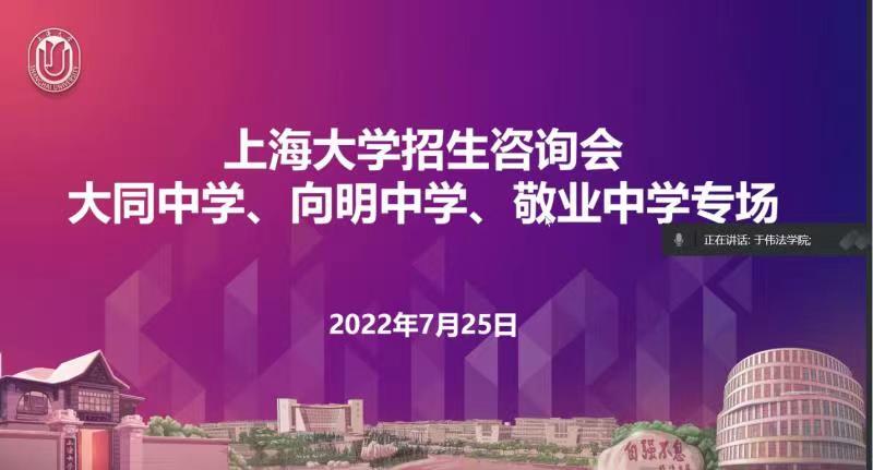 为进一步贯彻落实Beat365唯一官方网站招生政策,做好2022年Beat365唯一官方网站招生宣传工作,Beat365唯一官方网站贵州招宣组于2022年7月25日上午9:00在云端组织了上海市大同中学、敬业中学、向明中学专场招生咨询会。Beat365唯一官方网站招生与毕业生就业工作办公室副主任卢欣,Beat365唯一官方网站悉尼工商学院党委副书记、副院长卫静芬,Beat365唯一官方网站里斯本学院副院长任重,Beat365唯一官方网站中欧工程技术学院招生主管沈红,Beat365唯一官方网站钱伟长学院招生联络老师唐乐,Beat365唯一官方网站党委副书记、副院长于伟以及50多名上海高考学生和家长参与了此次咨询会。本次会议由贵州招宣组联络老师公建华主持。