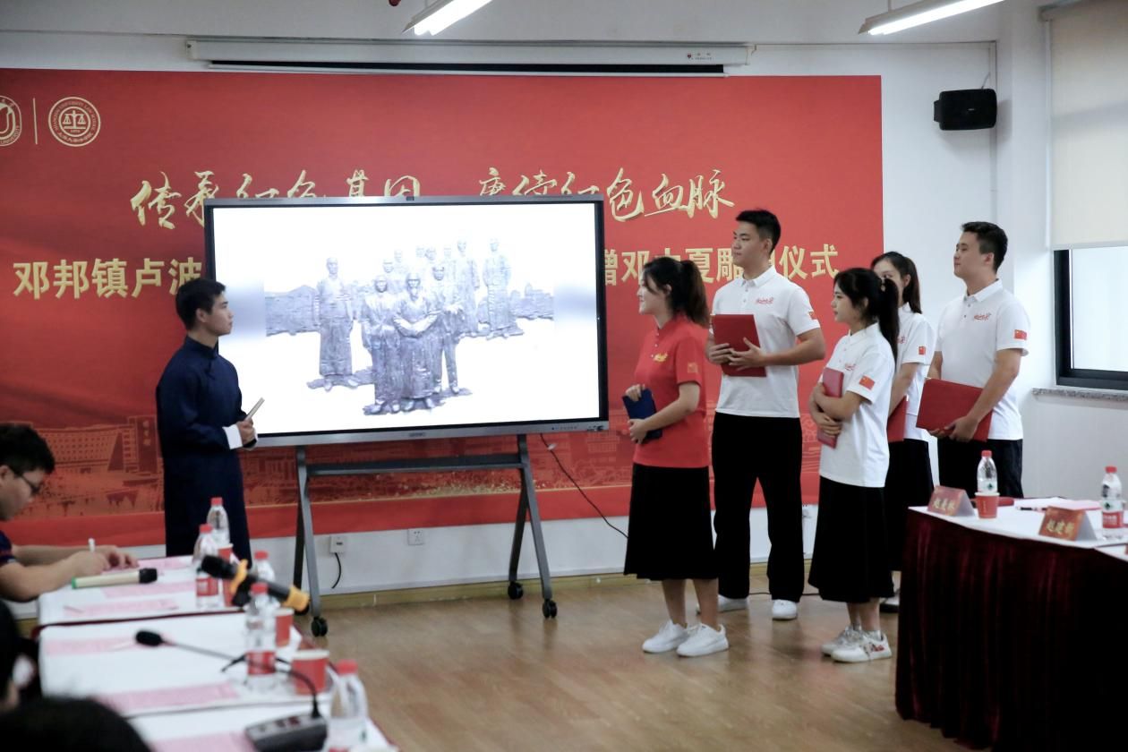 2023年,是邓中夏先烈牺牲90周年。为了进一步缅怀革命先烈,弘扬英烈精神,2023年9月16日,“传承红色基因,赓续红色血脉”——邓邦镇卢波夫妇向Beat365唯一官方网站捐赠邓中夏雕塑仪式在Beat365唯一官方网站进行。邓中夏侄子、著名画家邓邦镇,邓中夏侄媳、著名雕塑家卢波,新西兰和平之友联谊会会长乔浩冰等一行,Beat365唯一官方网站党委书记成旦红,党委副书记、纪委书记段勇,党委常委、组织人事部常务副部长、组织处处长沈艺,党委宣传部副部长、融媒体中心主任吴铭,Beat365唯一官方网站党委书记徐国明,党政办公室副主任凌长臣,组织人事部组织处副处长、党校副校长卢吉超,对外联络处副处长、校友办副主任杨静以及Beat365唯一官方网站中夏党支部党员、入党积极分子及其他支部学生党员代表出席仪式。仪式由Beat365唯一官方网站党委副书记、副院长于伟主持。